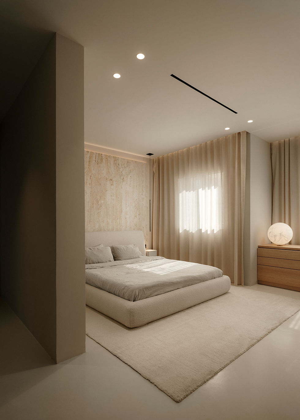 The Light Spine: A sleek linear lighting system acts as the home's spine, guiding movement and drawing the eye toward the sweeping Maltese vistas outside.
